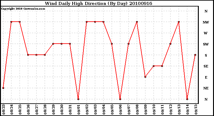 Milwaukee Weather -- 20100916 Wind Daily High Direction (By Day) -- From curtronics.com by Curt Blank