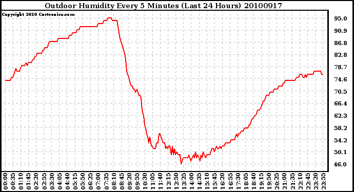 Milwaukee Weather -- 20100917 Outdoor Humidity Every 5 Minutes (Last 24 Hours) -- From curtronics.com by Curt Blank