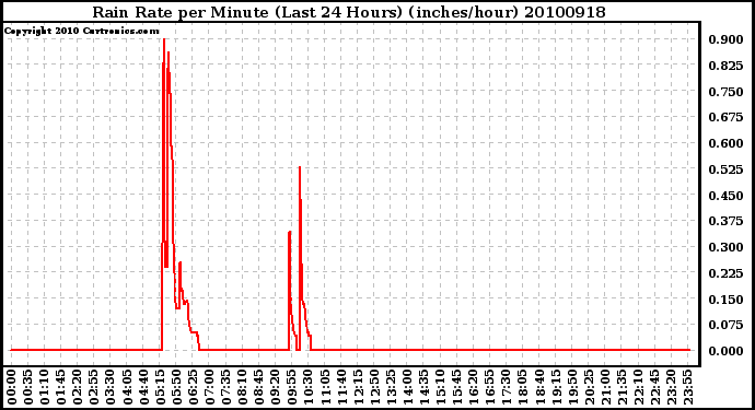 Milwaukee Weather -- 20100918 Rain Rate per Minute (Last 24 Hours) (inches/hour) -- From curtronics.com by Curt Blank