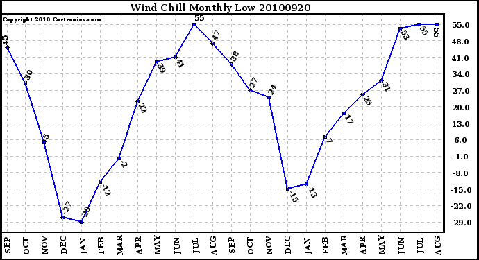 Milwaukee Weather -- 20100920 Wind Chill Monthly Low -- From curtronics.com by Curt Blank