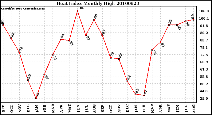 Milwaukee Weather -- 20100923 Heat Index Monthly High -- From curtronics.com by Curt Blank