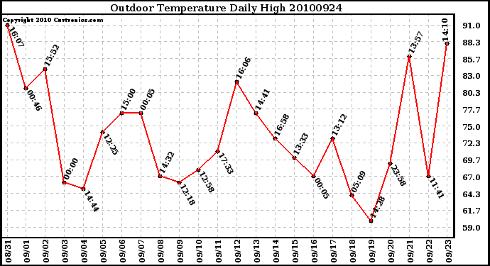 Milwaukee Weather -- 20100924 Outdoor Temperature Daily High -- From curtronics.com by Curt Blank