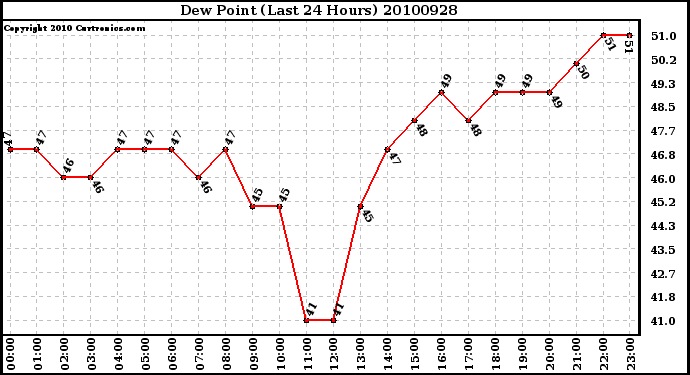 Milwaukee Weather -- 20100928 Dew Point (Last 24 Hours) -- From curtronics.com by Curt Blank