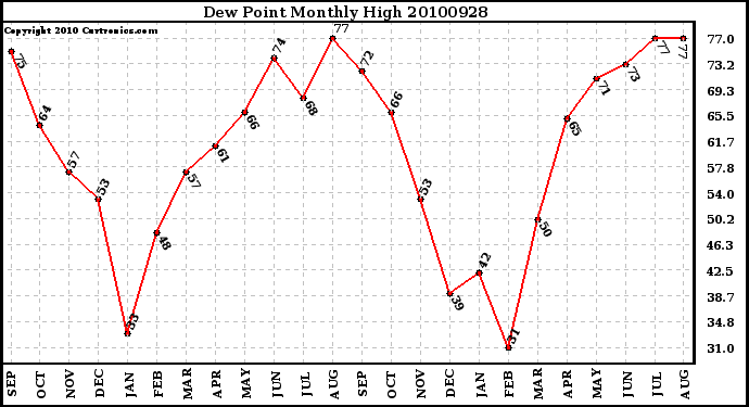 20100928 Dew Point Monthly High