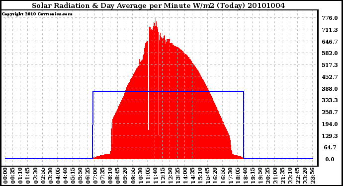 Milwaukee Weather -- 20101004 Solar Radiation & Day Average per Minute W/m2 (Today) -- From curtronics.com by Curt Blank