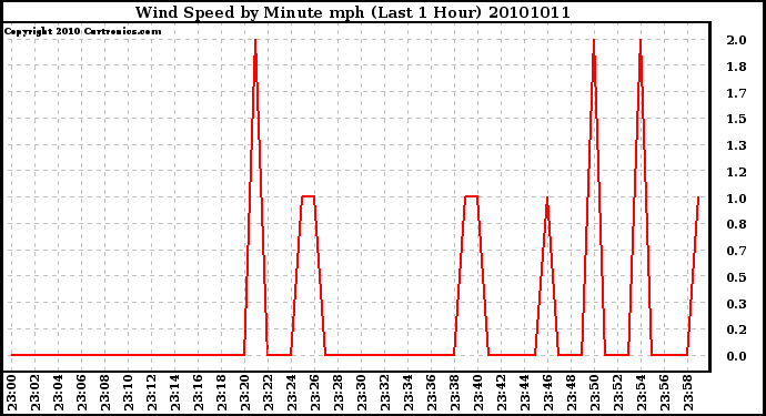 20101011 Wind Speed by Minute mph (Last 1 Hour)
