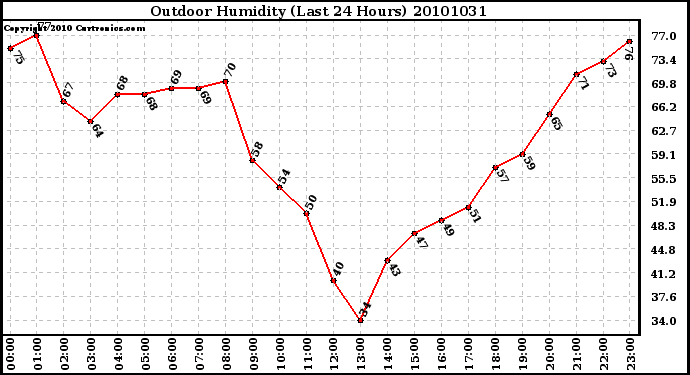 Milwaukee Weather -- 20101031 Outdoor Humidity (Last 24 Hours) -- From curtronics.com by Curt Blank