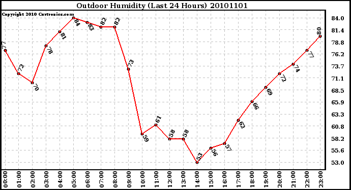 Milwaukee Weather -- 20101101 Outdoor Humidity (Last 24 Hours) -- From curtronics.com by Curt Blank