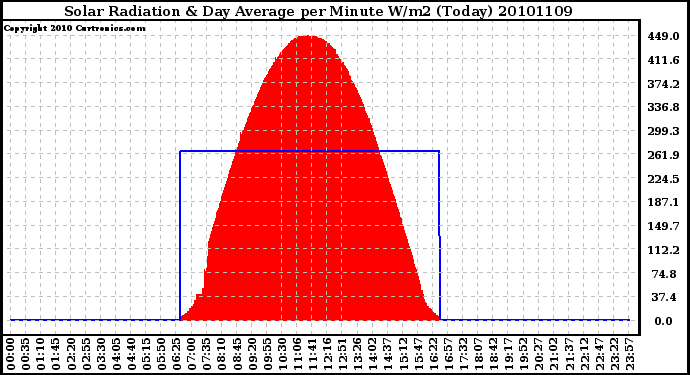 Milwaukee Weather -- 20101109 Solar Radiation & Day Average per Minute W/m2 (Today) -- From curtronics.com by Curt Blank