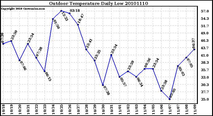 Milwaukee Weather -- 20101110 Outdoor Temperature Daily Low -- From curtronics.com by Curt Blank