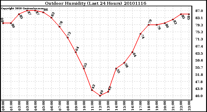 Milwaukee Weather -- 20101116 Outdoor Humidity (Last 24 Hours) -- From curtronics.com by Curt Blank