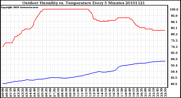 Milwaukee Weather -- 20101121 Outdoor Humidity vs. Temperature Every 5 Minutes -- From curtronics.com by Curt Blank