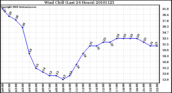 Milwaukee Weather -- 20101123 Wind Chill (Last 24 Hours) -- From curtronics.com by Curt Blank