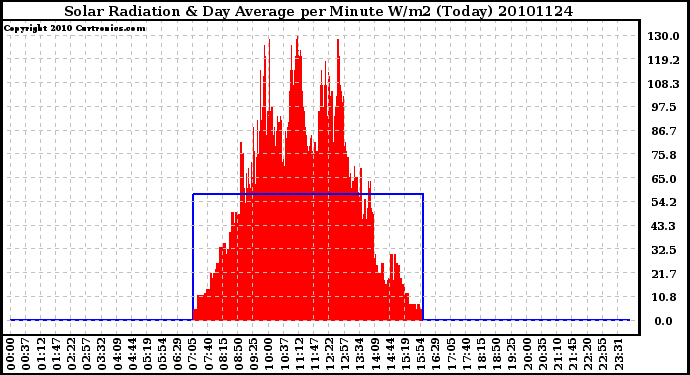 Milwaukee Weather -- 20101124 Solar Radiation & Day Average per Minute W/m2 (Today) -- From curtronics.com by Curt Blank