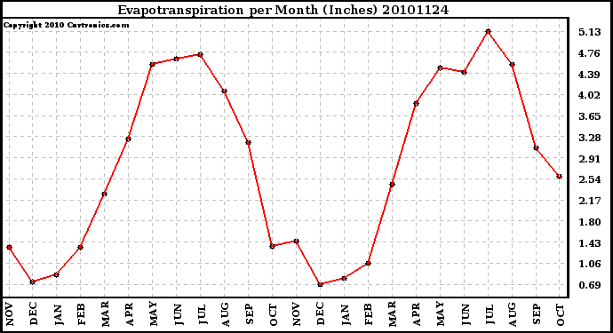 20101124 Evapotranspiration per Month (Inches)
