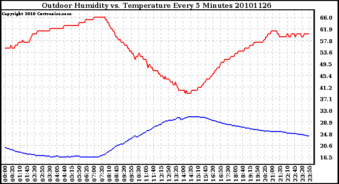 Milwaukee Weather -- 20101126 Outdoor Humidity vs. Temperature Every 5 Minutes -- From curtronics.com by Curt Blank