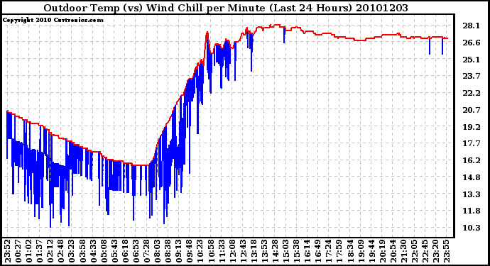 Milwaukee Weather -- 20101203 Outdoor Temp (vs) Wind Chill per Minute (Last 24 Hours) -- From curtronics.com by Curt Blank
