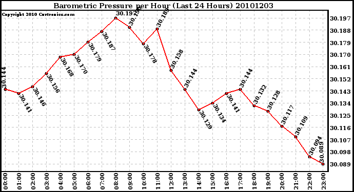 Milwaukee Weather -- 20101203 Barometric Pressure per Hour (Last 24 Hours) -- From curtronics.com by Curt Blank