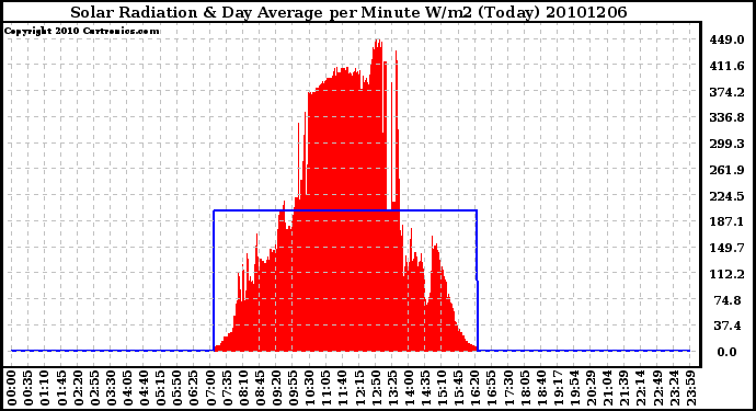 Milwaukee Weather -- 20101206 Solar Radiation & Day Average per Minute W/m2 (Today) -- From curtronics.com by Curt Blank