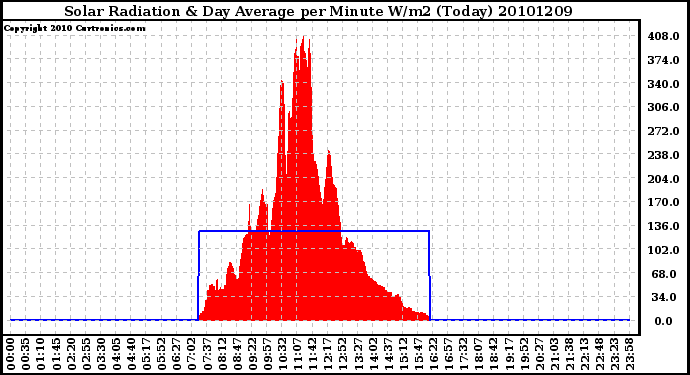 Milwaukee Weather -- 20101209 Solar Radiation & Day Average per Minute W/m2 (Today) -- From curtronics.com by Curt Blank