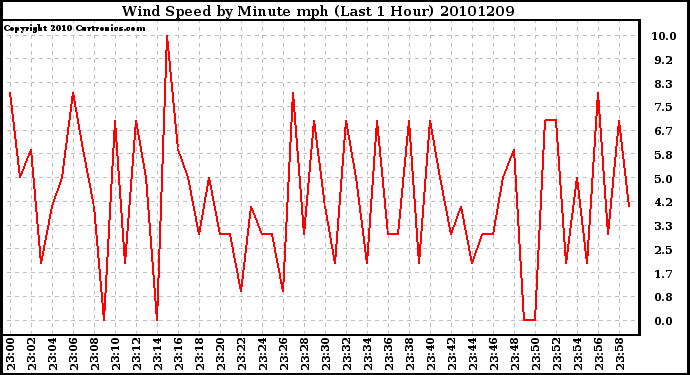 Milwaukee Weather -- 20101209 Wind Speed by Minute mph (Last 1 Hour) -- From curtronics.com by Curt Blank