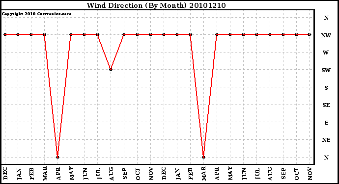 Milwaukee Weather -- 20101210 Wind Direction (By Month) -- From curtronics.com by Curt Blank