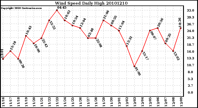 Milwaukee Weather -- 20101210 Wind Speed Daily High -- From curtronics.com by Curt Blank