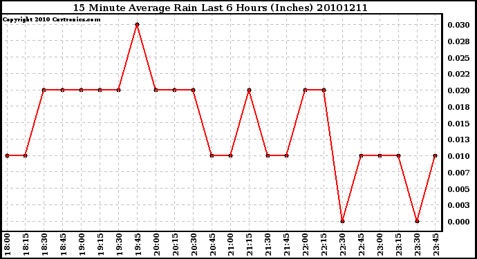 Milwaukee Weather -- 20101211 15 Minute Average Rain Last 6 Hours (Inches) -- From curtronics.com by Curt Blank