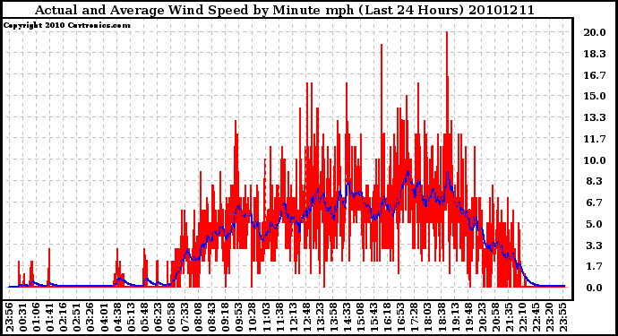 20101211 Actual and Average Wind Speed by Minute mph (Last 24 Hours)