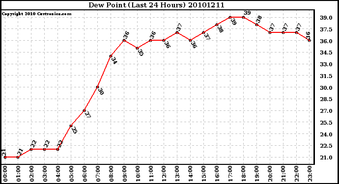 Milwaukee Weather -- 20101211 Dew Point (Last 24 Hours) -- From curtronics.com by Curt Blank