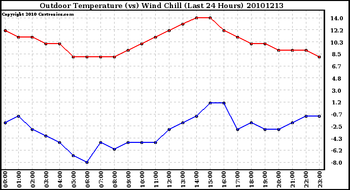 Milwaukee Weather -- 20101213 Outdoor Temperature (vs) Wind Chill (Last 24 Hours) -- From curtronics.com by Curt Blank