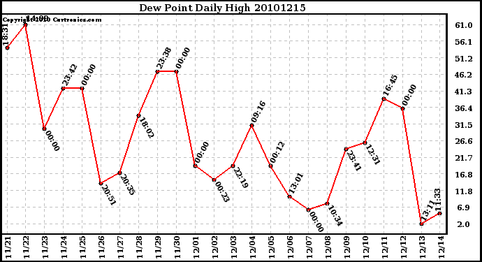 Milwaukee Weather -- 20101215 Dew Point Daily High -- From curtronics.com by Curt Blank