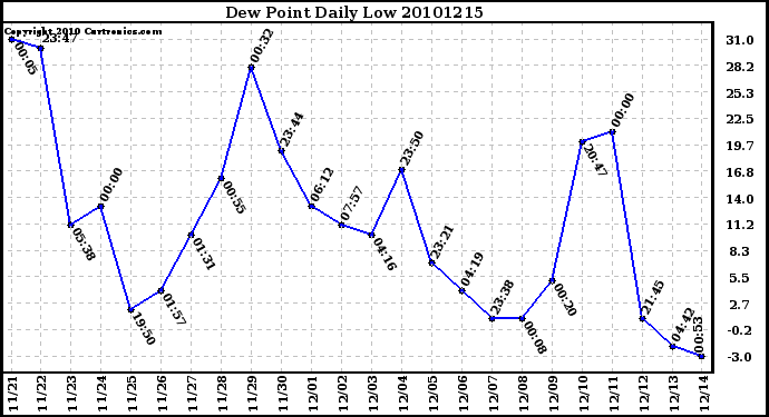 Milwaukee Weather -- 20101215 Dew Point Daily Low -- From curtronics.com by Curt Blank