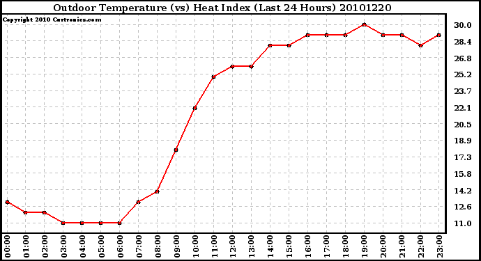 Milwaukee Weather -- 20101220 Outdoor Temperature (vs) Heat Index (Last 24 Hours) -- From curtronics.com by Curt Blank