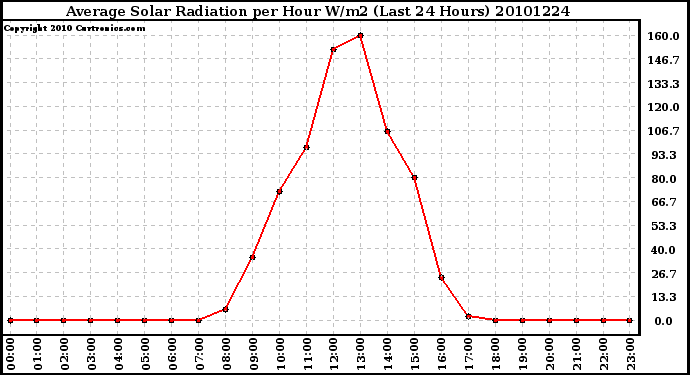 Milwaukee Weather -- 20101224 Average Solar Radiation per Hour W/m2 (Last 24 Hours) -- From curtronics.com by Curt Blank