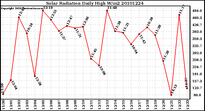 Milwaukee Weather -- 20101224 Solar Radiation Daily High W/m2 -- From curtronics.com by Curt Blank