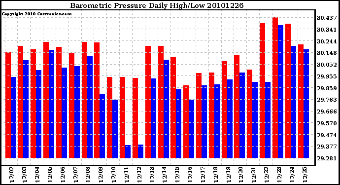 Milwaukee Weather -- 20101226 Barometric Pressure Daily High/Low -- From curtronics.com by Curt Blank