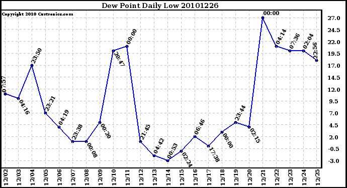 Milwaukee Weather -- 20101226 Dew Point Daily Low -- From curtronics.com by Curt Blank
