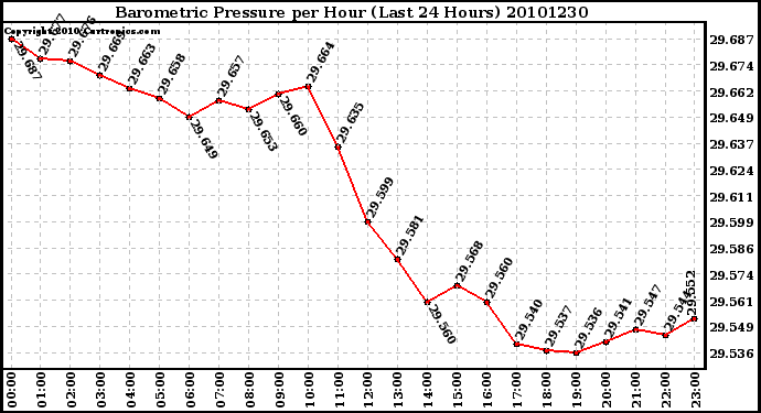 Milwaukee Weather -- 20101230 Barometric Pressure per Hour (Last 24 Hours) -- From curtronics.com by Curt Blank
