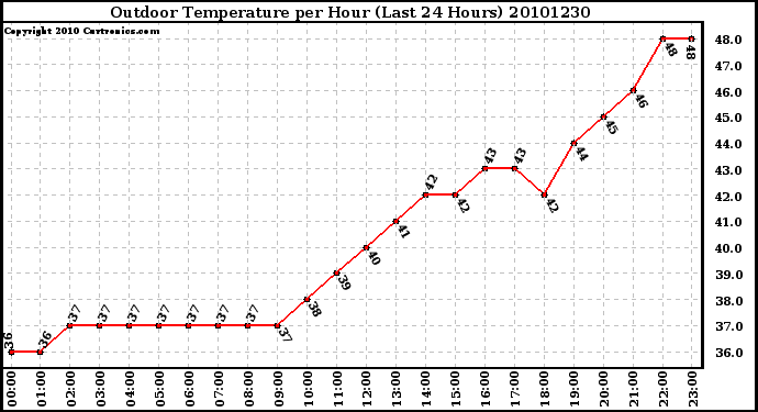Milwaukee Weather -- 20101230 Outdoor Temperature per Hour (Last 24 Hours) -- From curtronics.com by Curt Blank