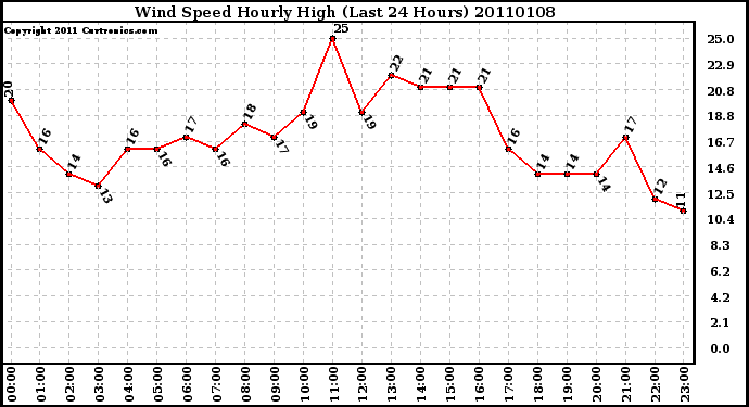 20110108 Wind Speed Hourly High (Last 24 Hours)