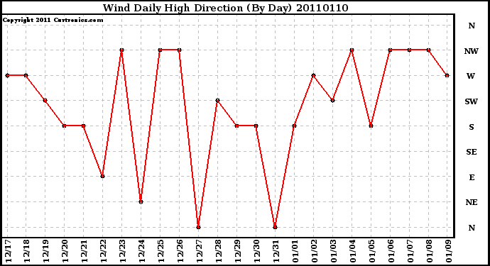 Milwaukee Weather -- 20110110 Wind Daily High Direction (By Day) -- From curtronics.com by Curt Blank