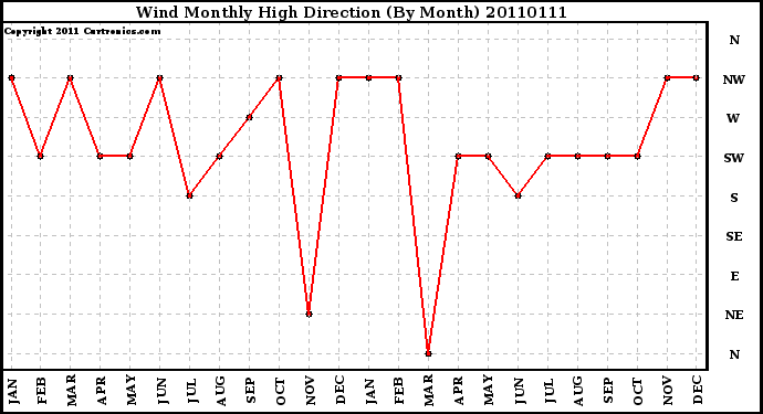 Milwaukee Weather -- 20110111 Wind Monthly High Direction (By Month) -- From curtronics.com by Curt Blank
