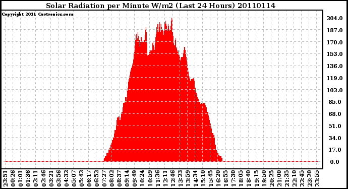 Milwaukee Weather -- 20110114 Solar Radiation per Minute W/m2 (Last 24 Hours) -- From curtronics.com by Curt Blank