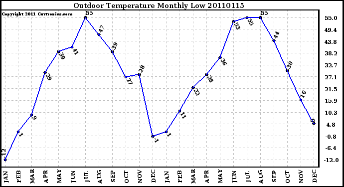 Milwaukee Weather -- 20110115 Outdoor Temperature Monthly Low -- From curtronics.com by Curt Blank