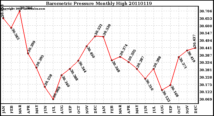 20110119 Barometric Pressure Monthly High