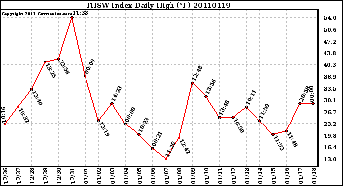 Milwaukee Weather -- 20110119 THSW Index Daily High (°F) -- From curtronics.com by Curt Blank