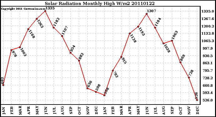 Milwaukee Weather -- 20110122 Solar Radiation Monthly High W/m2 -- From curtronics.com by Curt Blank