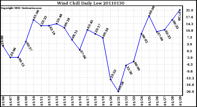 Milwaukee Weather -- 20110130 Wind Chill Daily Low -- From curtronics.com by Curt Blank
