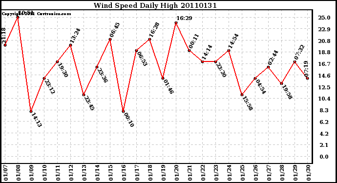 Milwaukee Weather -- 20110131 Wind Speed Daily High -- From curtronics.com by Curt Blank